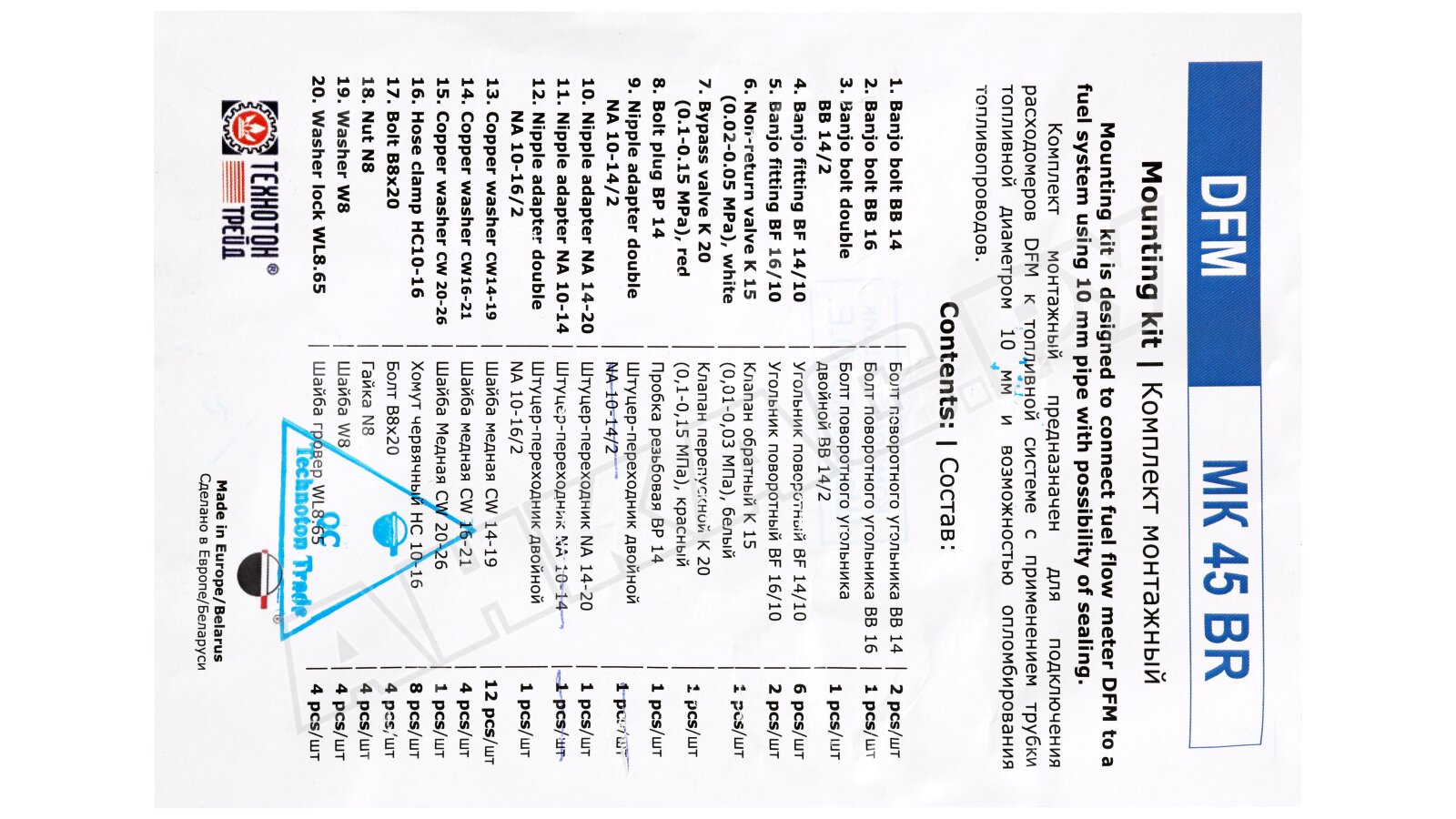 DFM МК45, монтаж DFM 500 с трубкой Ø 10мм