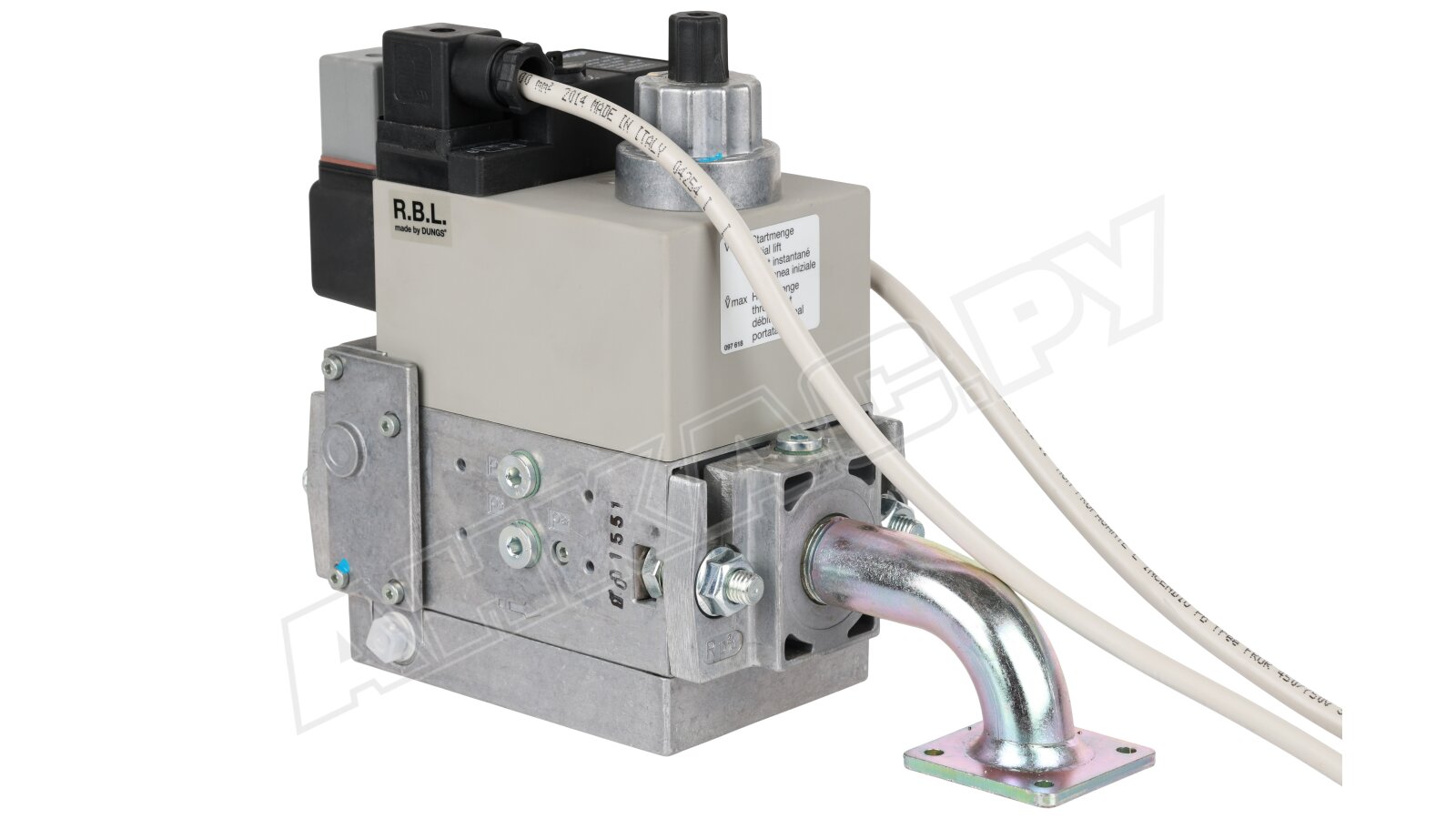 Компактная газовая рампа оснащена литым алюминиевым корпусом. На входе потока размещен датчик-реле, контролирующий минимальное давление газа и сетчатый фильтр тонкой очистки для удаления механических частиц. В состав мультиблока входят два быстродействующих электромагнитных клапана класса А по EN 161, регулятор давления. Настройка выходных параметров осуществляется при подключении горелки к котлу. Заданный уровень давления поддерживается автоматически. Опционально можно установить блок контроля герметичности газовых клапанов.