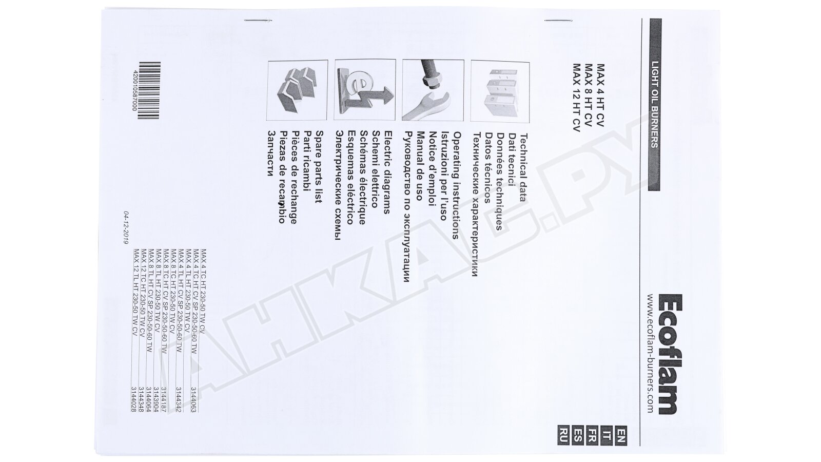 Паспорт на горелку Ecoflam MAX 8 TC HT CV TW.pdfПаспорт на горелку Ecoflam MAX 8 TC HT CV TW.pdf