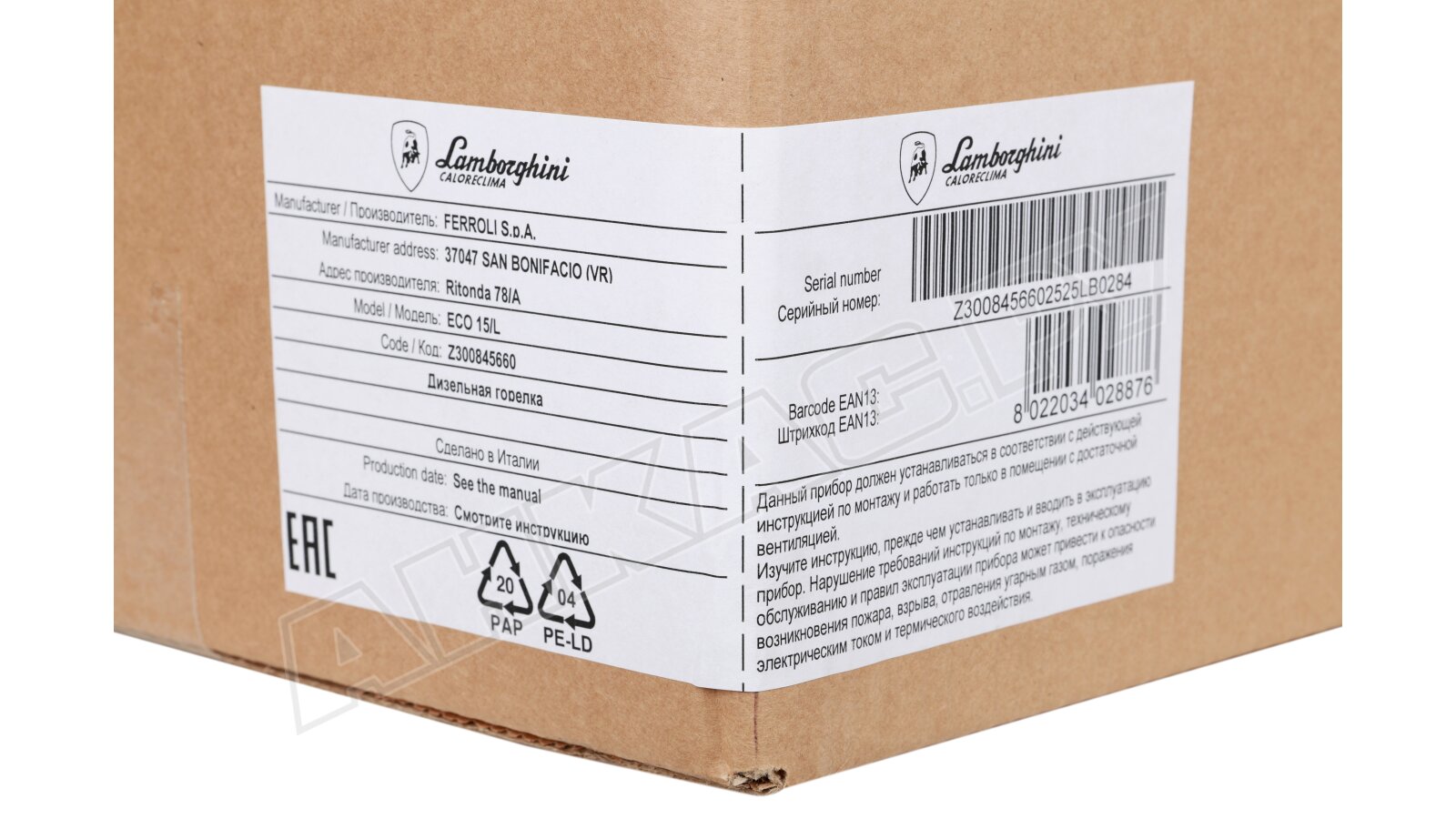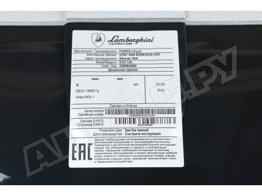 Установку дизельной горелки Lamborghini ECO 15/L должен выполнять квалифицированный специалист.