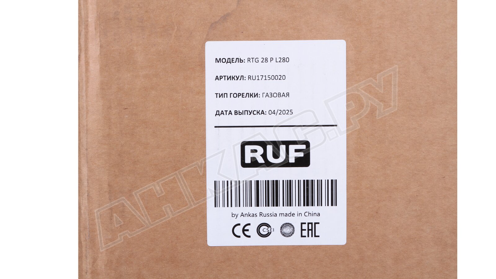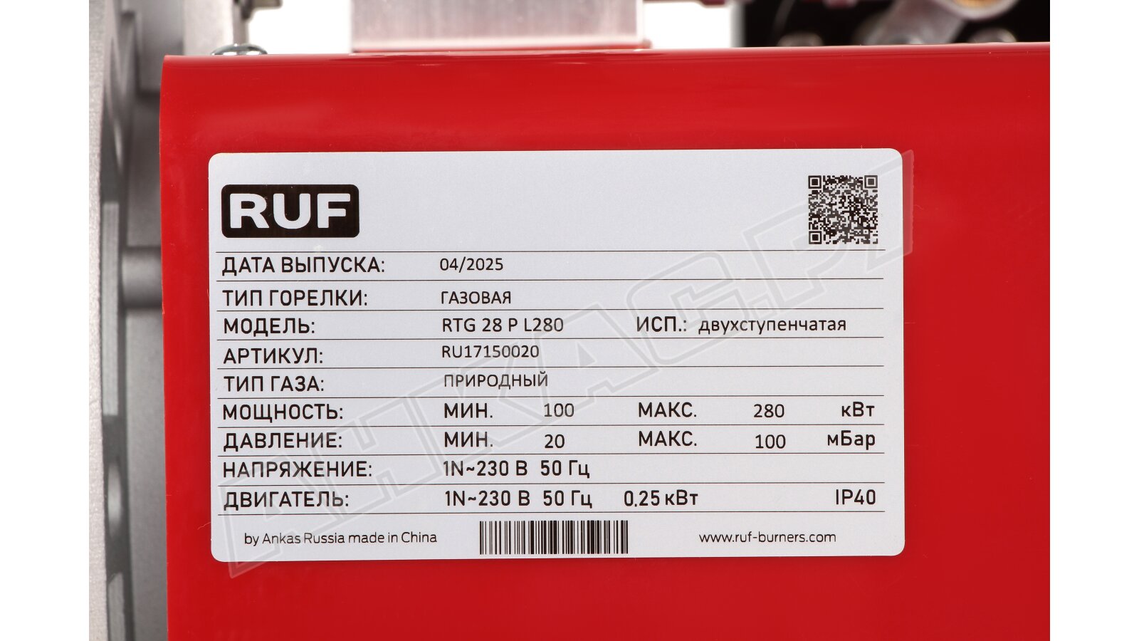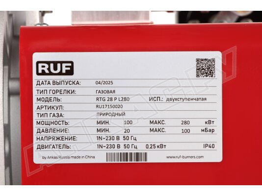 - Газовая горелка RUF RTG 28 P L280 MB-DLE 410