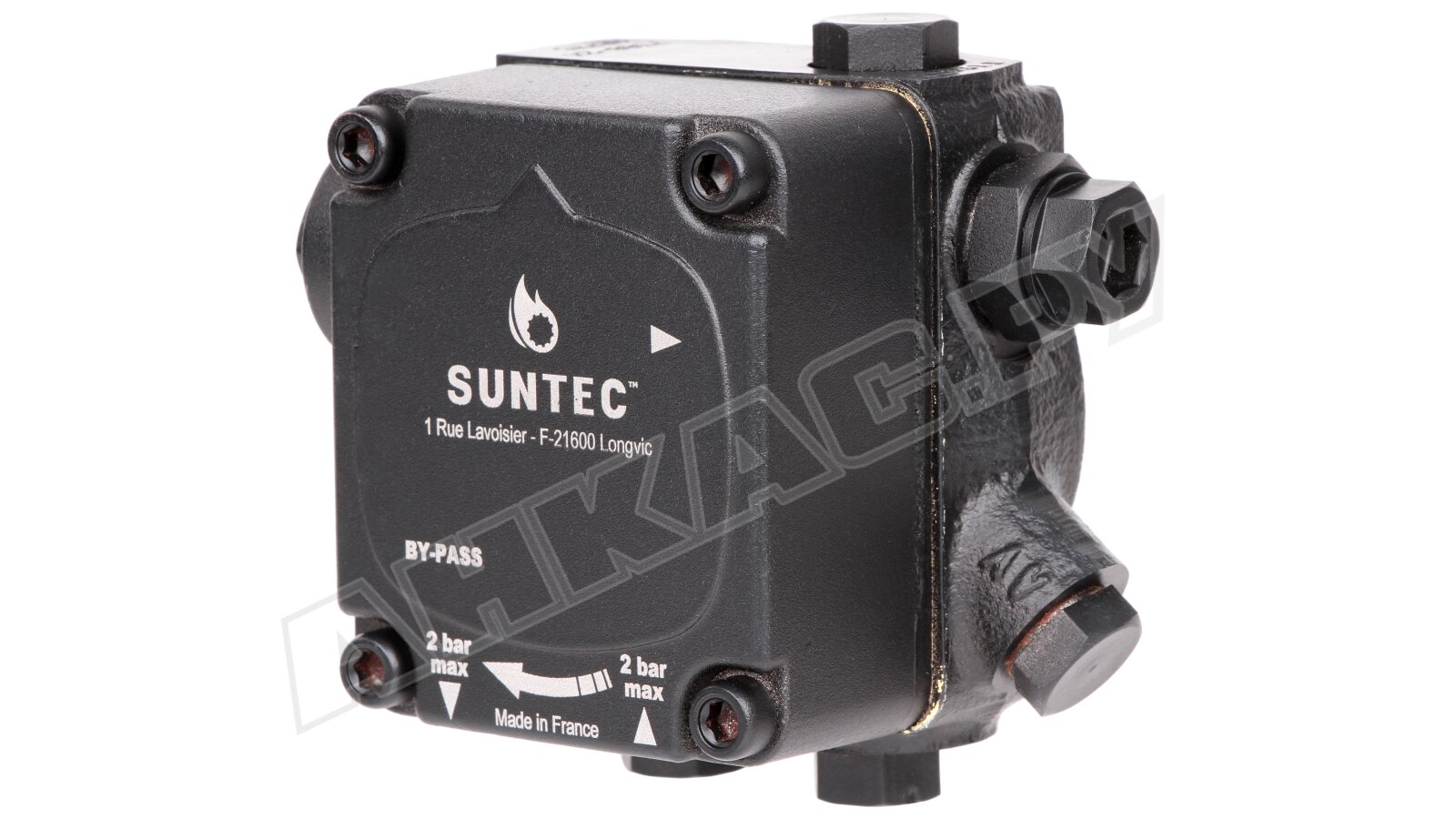 Для комплектации отопительных систем, работающих на жидком горючем, французской компанией Suntec разработана модель шестерёнчатого насоса с вращением вала против часовой стрелки AE 77 C 7380 2P. Оборудование имеет высокий уровень надёжности, оптимальную производительность — 113 л/час и простой монтаж к электромотору с помощью втулочного соединения ∅32 мм.