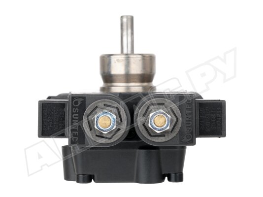 Насос серии AT2 оснащен э/м клапаном с отсекающей функцией (быстродействующий, нормально-закрытый, находится в линии форсунки) и двумя золотниковыми клапанами для каждой ступени давления. Переключение между режимами осуществляется с помощью нормально-открытого э/м клапана байпаса. Рабочей средой является дизельное топливо вязкостью 2-12 сСт. Насос может встраиваться в системы с одной или двумя трубами. Базовая сборка подготовлена к 2-трубному подключению. Предусмотрен один выход на форсунку. Насос рассчитан на работу с топливом температурой 0..+60 ºC. Устанавливается в промышленные жидкотопливные горелки мощностью до 1000 кВт.