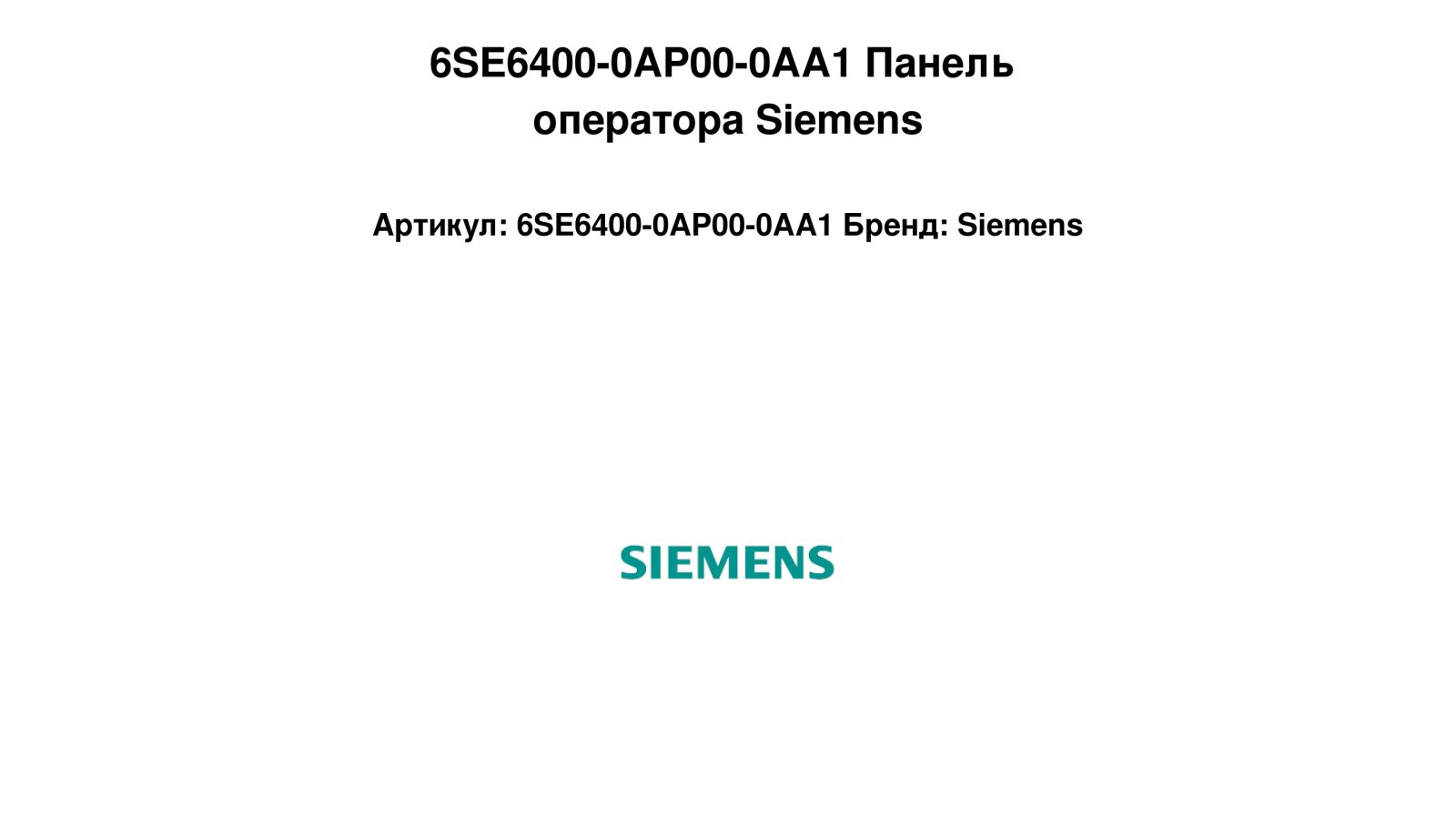 артикул: 6SE6400-0AP00-0AA1