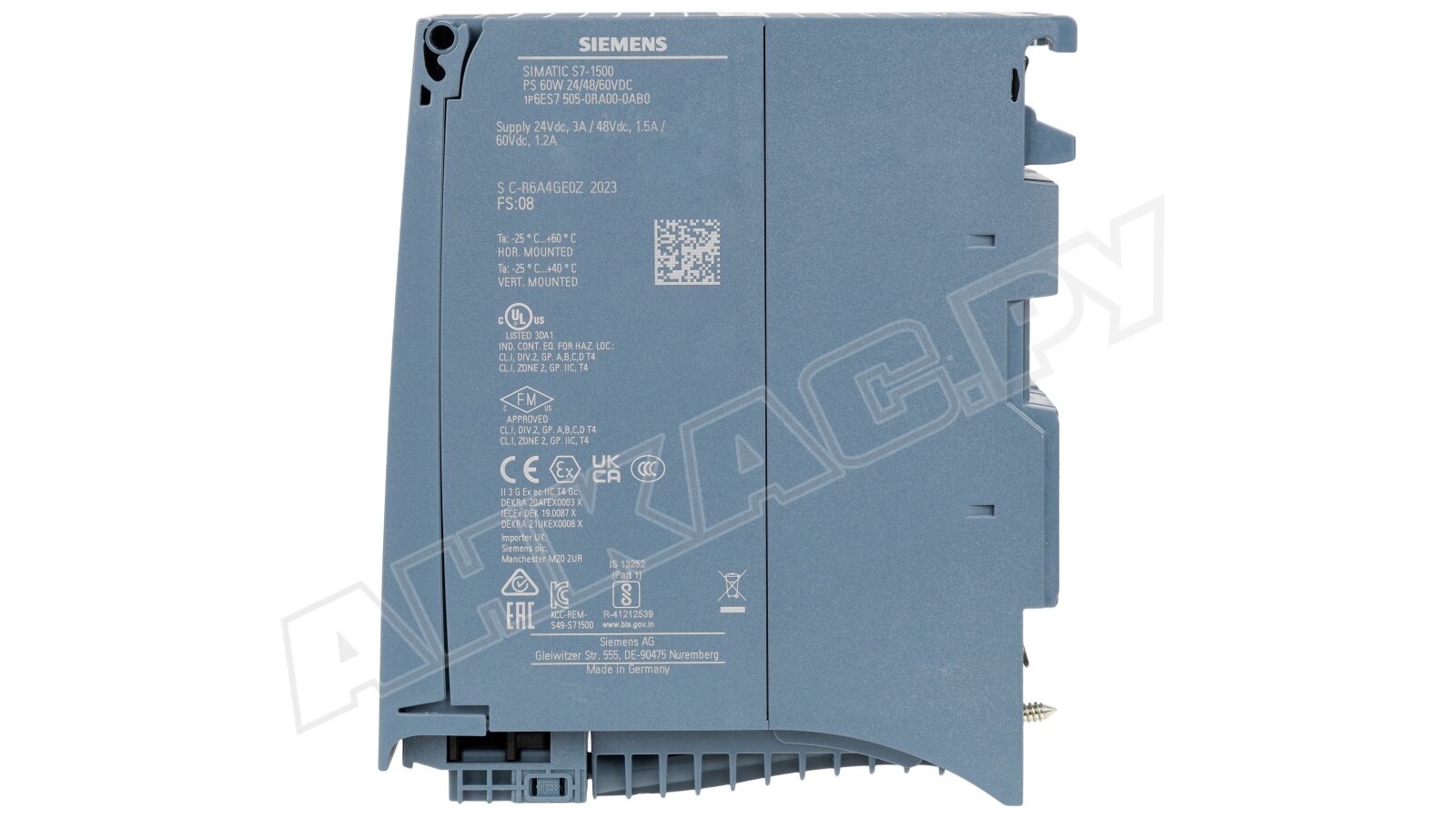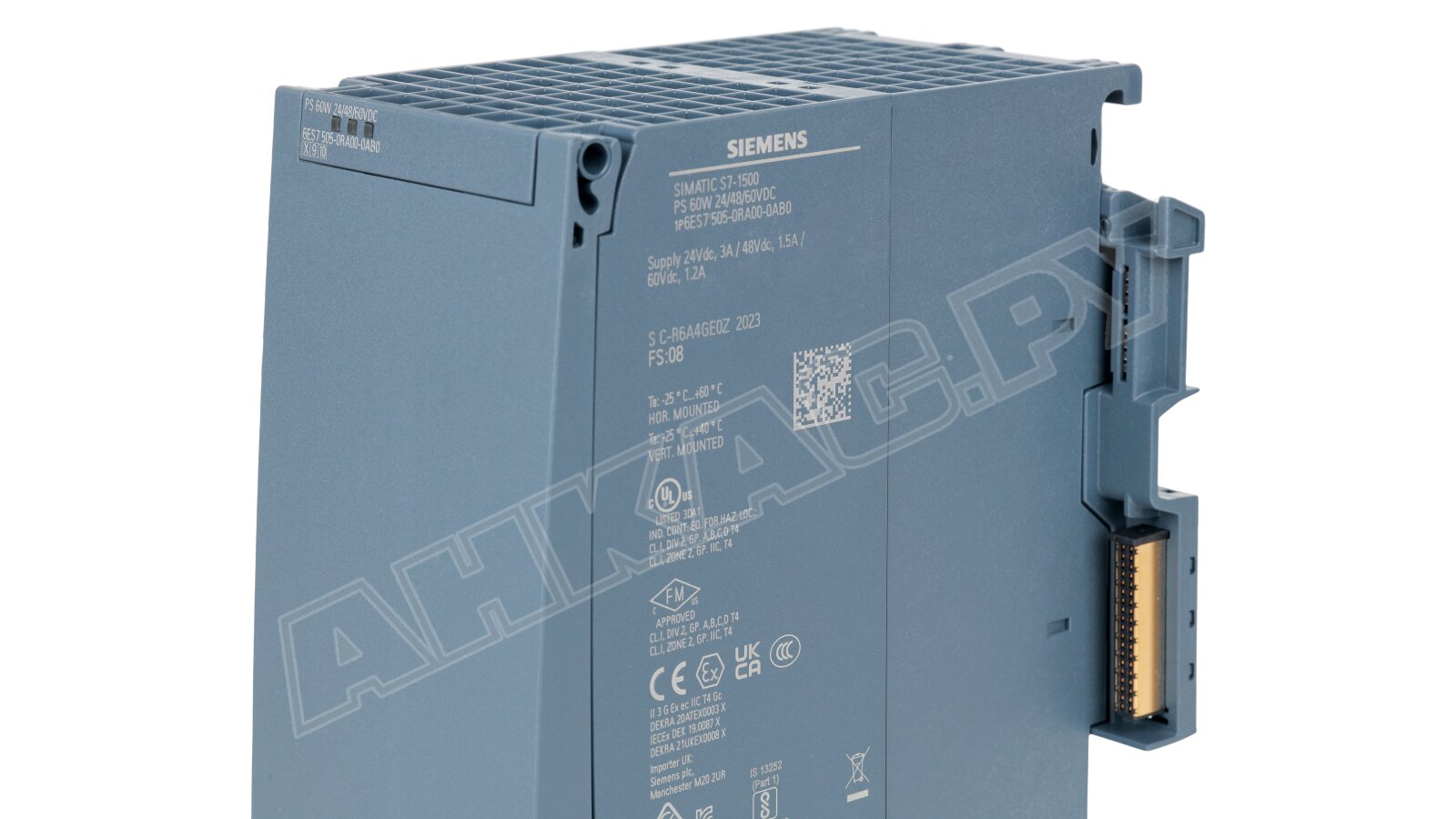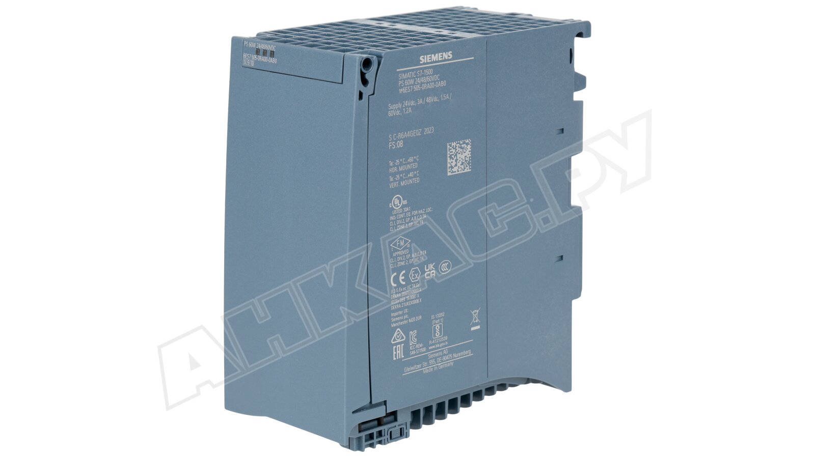 Блок питания Siemens, артикул 6ES7505-0RA00-0AB0, 60 Вт. Поддерживает выходное напряжение 24/48/60 В.