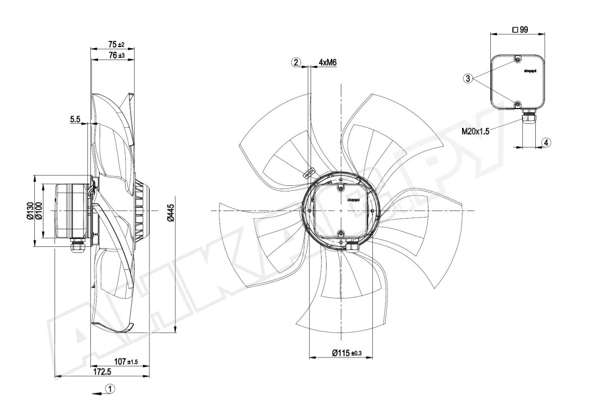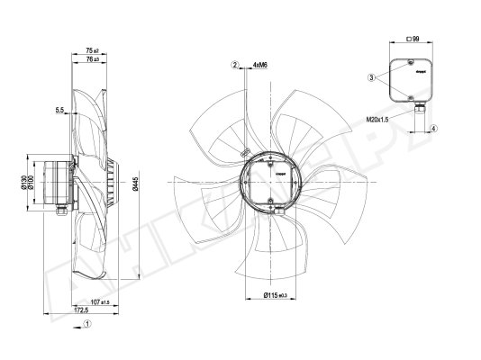 - Вентилятор осевой промышленный Ebmpapst A4D450AU0101