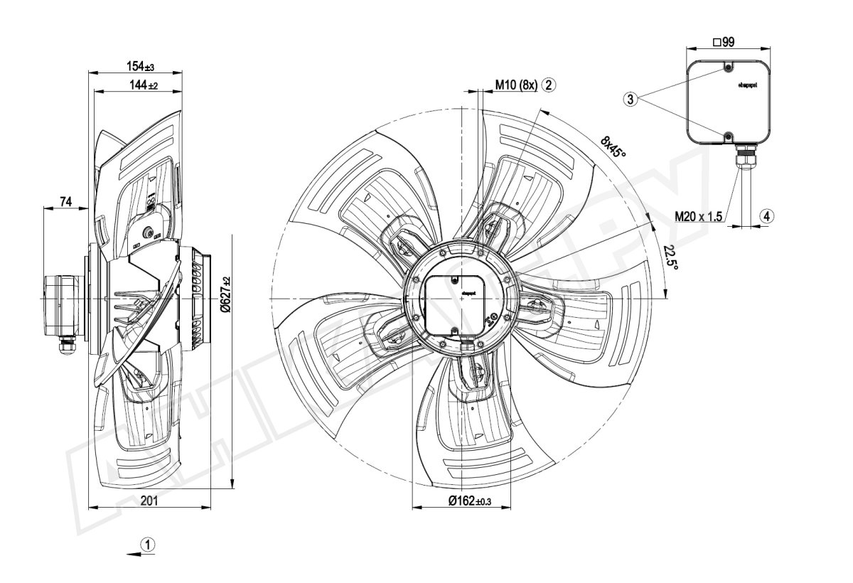 3. Вентилятор осевой промышленный Ebmpapst A4D630AD0101