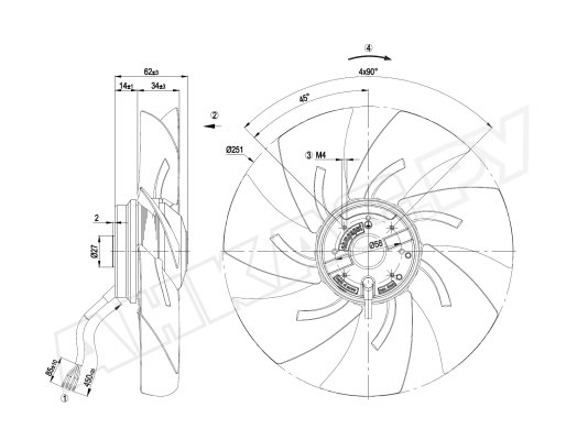 • Исполнение вентилятора: без решетки