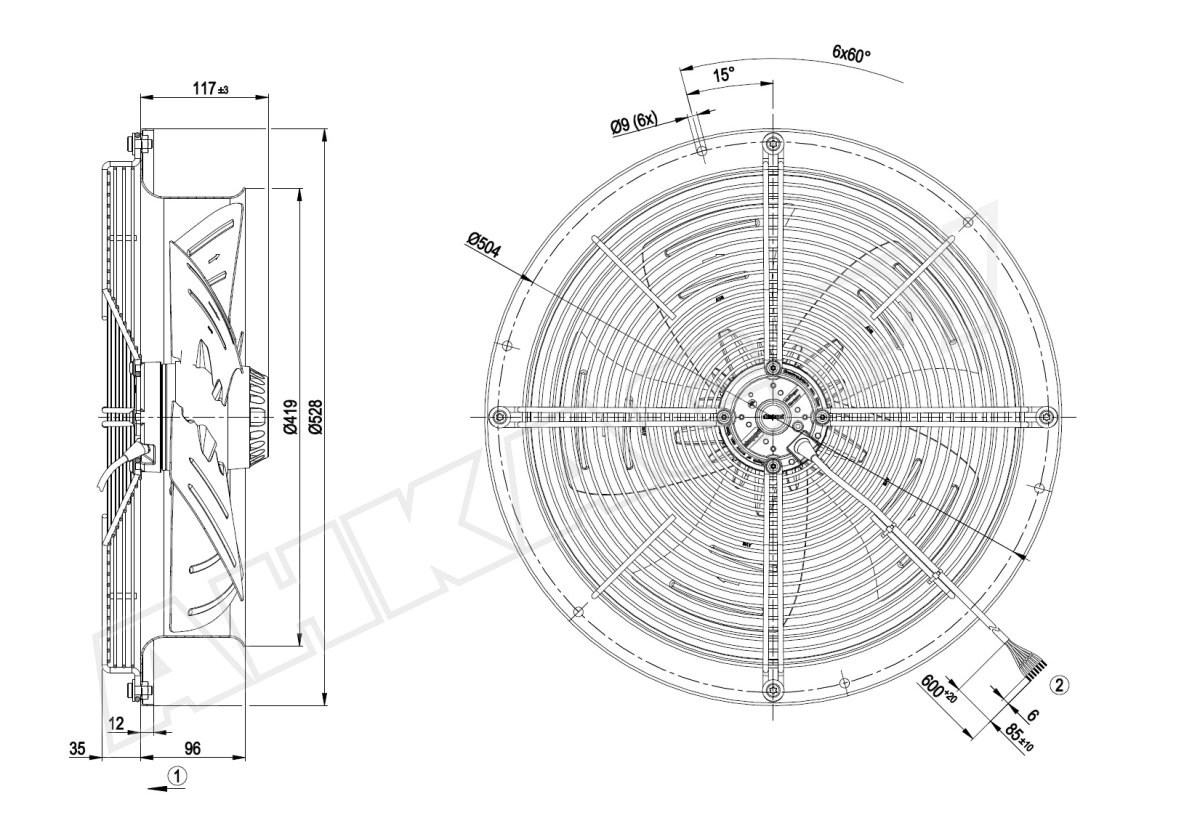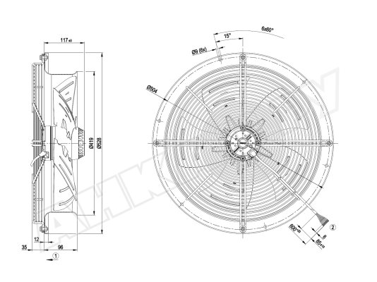- Исполнение вентилятора: с решеткой и стенным кольцом