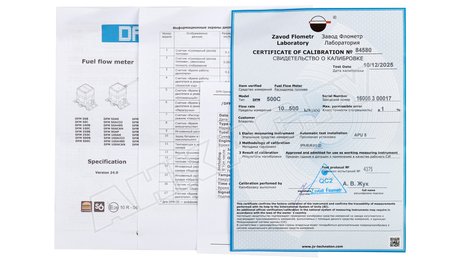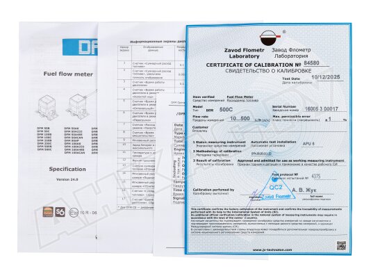 Перед поступлением в продажу, расходомер топлива DFM 500C испытывается на герметичность и поверяется на аттестованной проливной установке.
