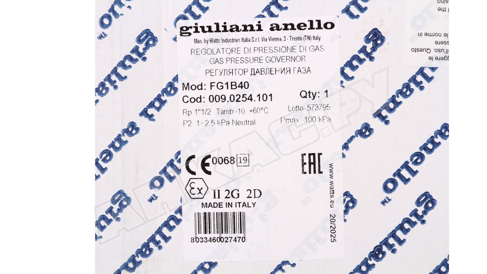 - Регулятор давления газа Giuliani Anello FG1B40