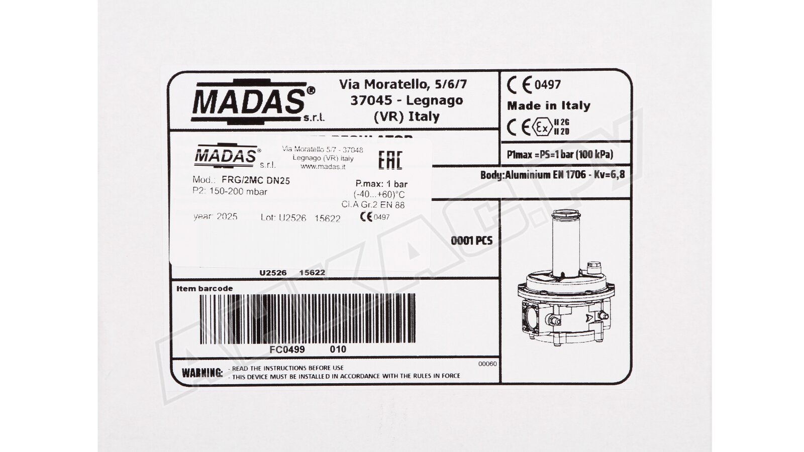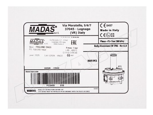 Регулятор давления газа Madas FRG/2MC DN 25, FC04 050