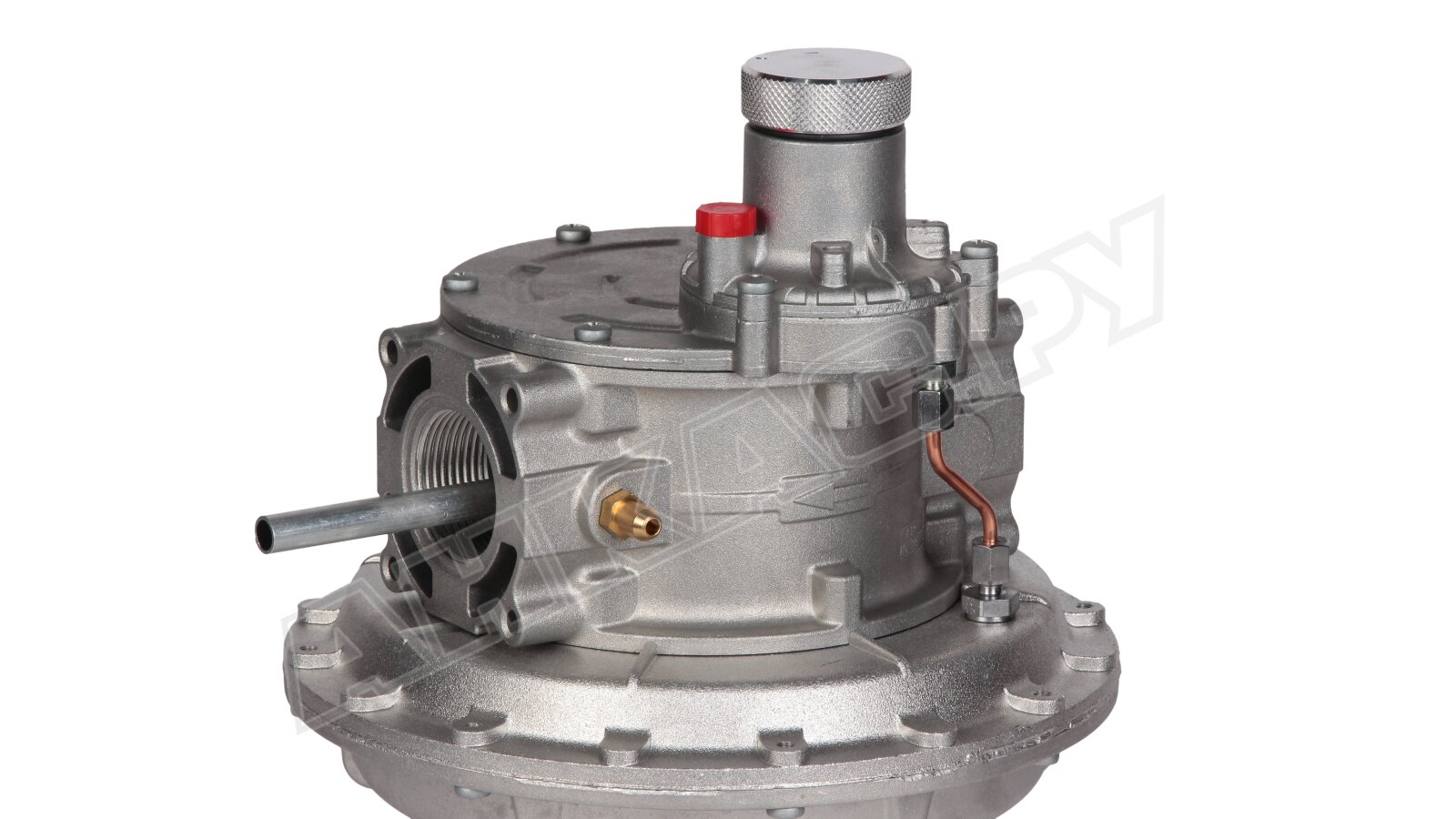 Возможно размещение на горизонтальный и вертикальный трубопровод (преимущественно вверх пружиной). При других вариантах монтажа (пружина сбоку) сокращается срок службы регулятора.