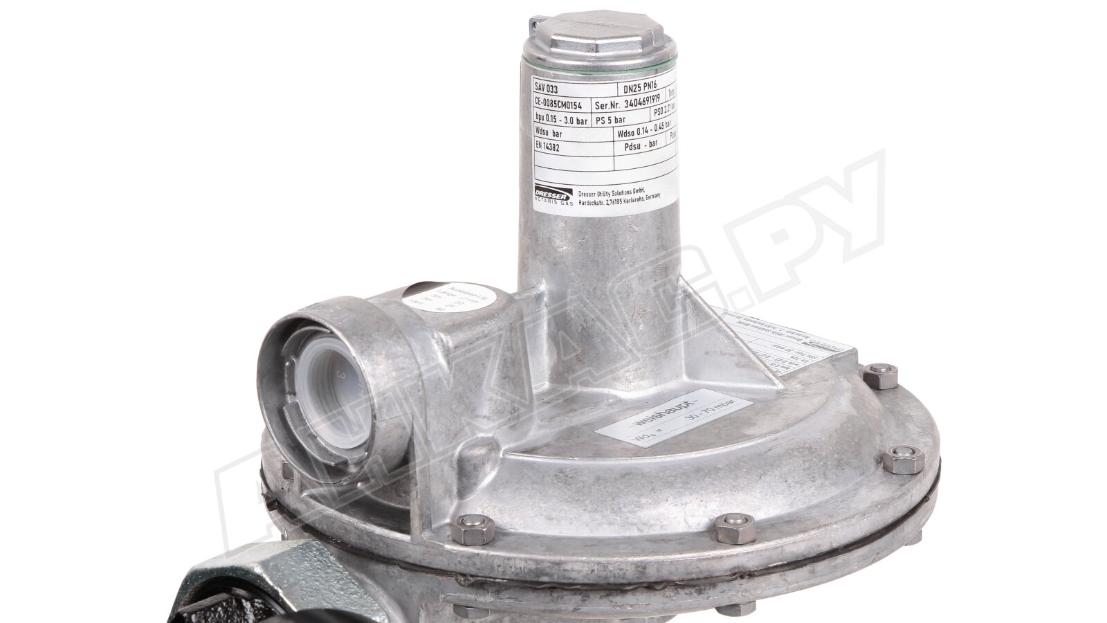 Регулятор давления газа типа 08/1 133-5-72, форсунка 6.3 мм. Цвет пружины: зелёный, диапазон настройки: 140-450 мбар.