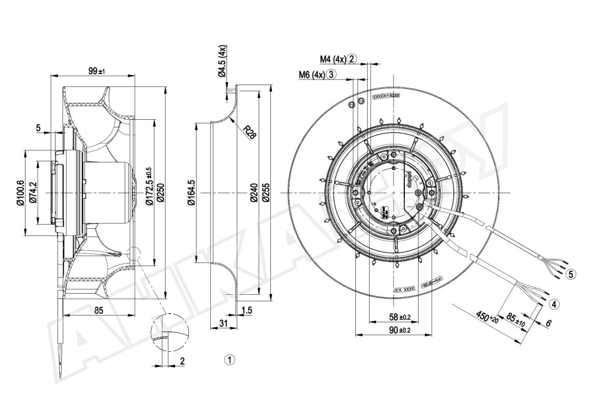 Центробежный вентилятор Ebmpapst R3G250RE0707