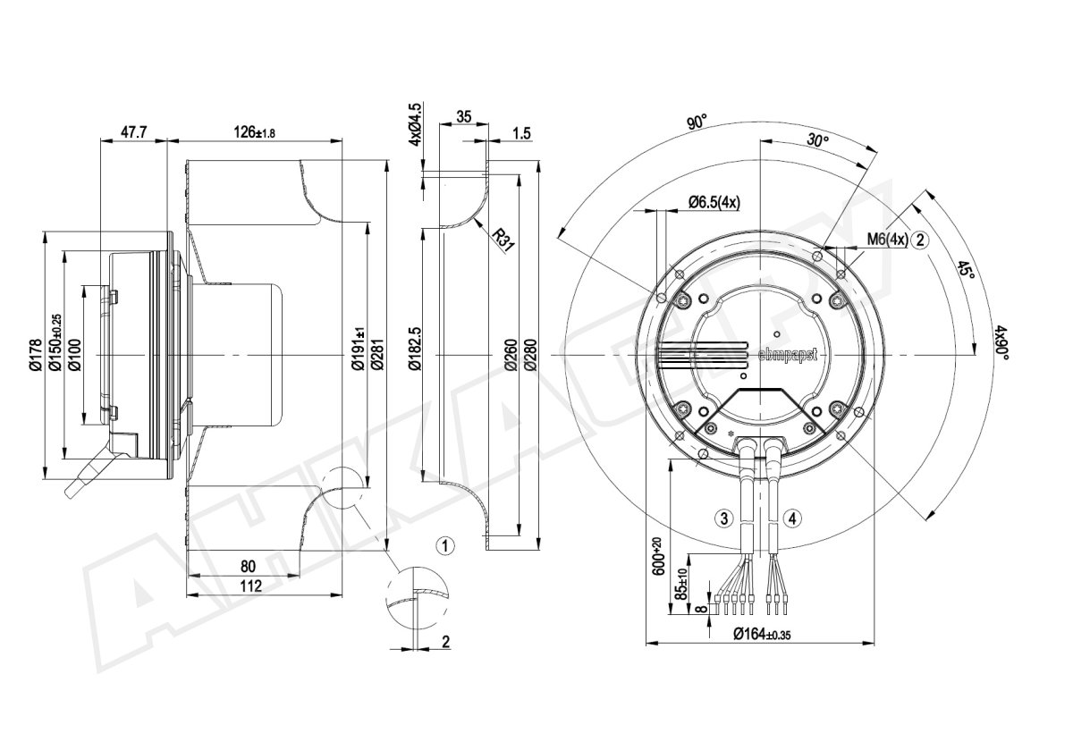 3. Центробежный вентилятор Ebmpapst R3G280AF3571