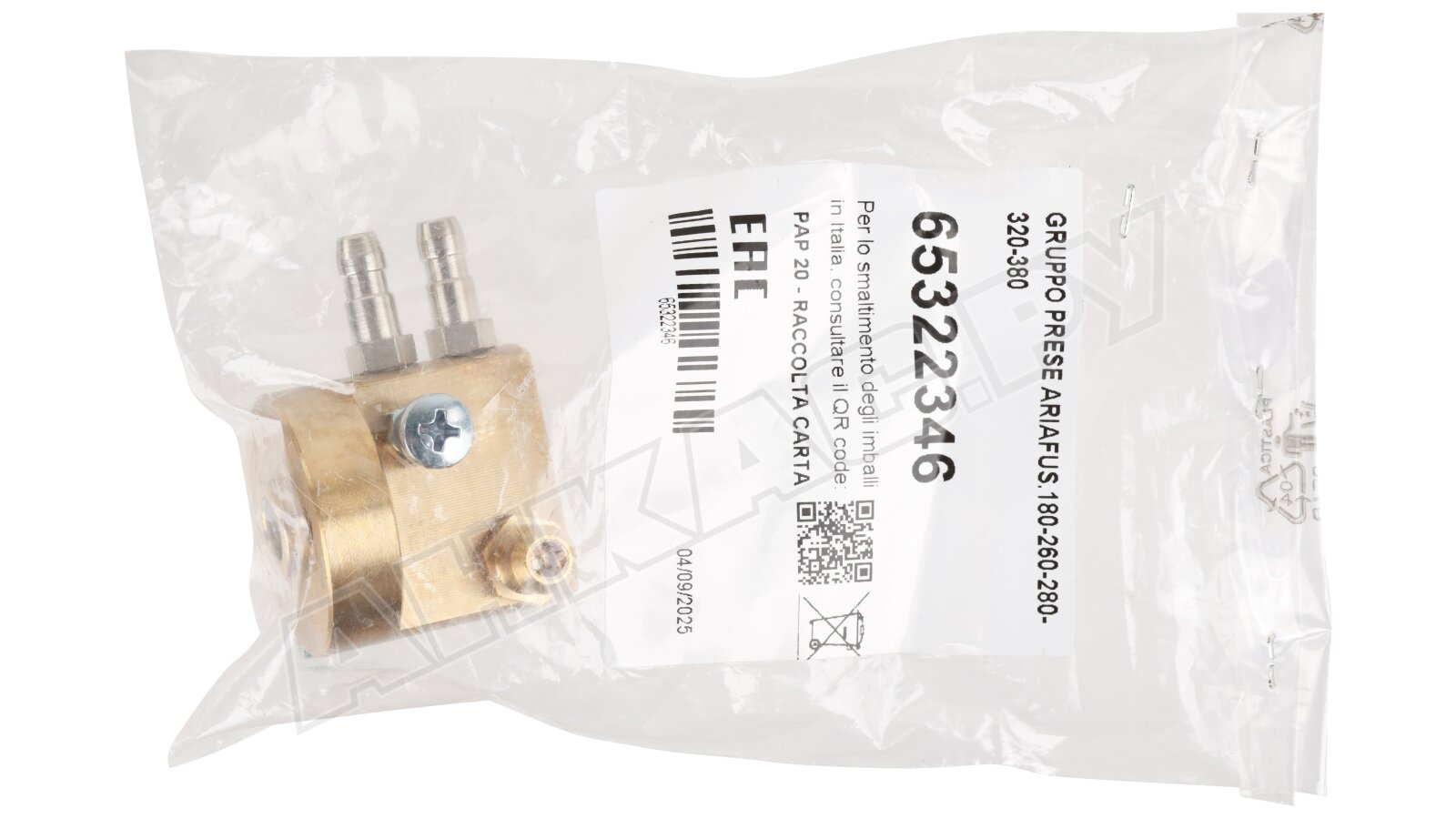 Ниппель в комплекте 2 X Ø6,5 - M6 + блок артикул 65322346 предназначен для измерения давления воздуха газовых и комбинированных горелок Ecoflam. Комплектация представлена двумя ниппелями диаметром 6,5 мм, распределительным блоком, фиксирующим винтом и гайкой. Запчасти выполнены из износостойкого металла. Узнать подробную информацию и получить помощь в подборе комплектующих для газовых и комбинированных систем отопления можно у специалистов АНКАС.